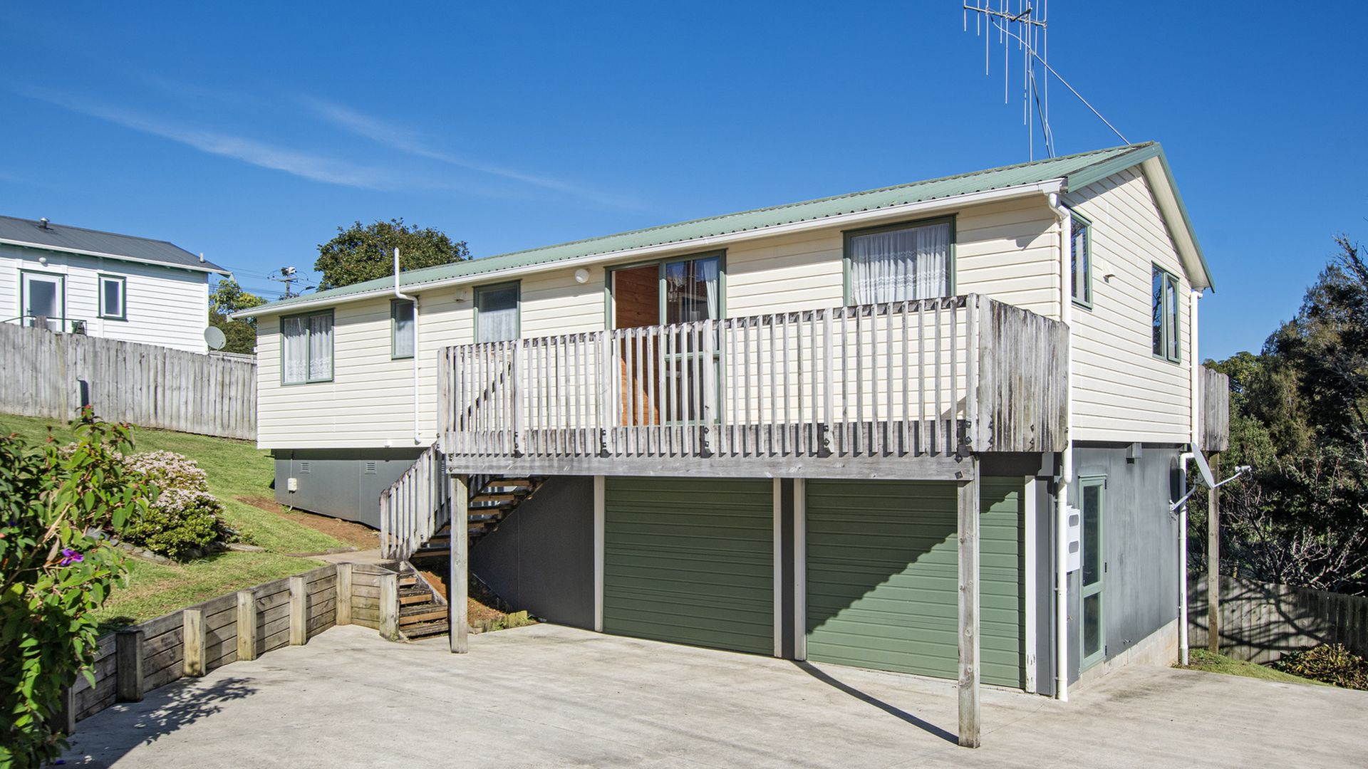 Saturated in all day sun with the front deck capturing the morning sun, whilst at the rear the second deck offers a great view up towards Parakiore, and gets wonderful afternoon sun - perfect spot for those after work drinkees.